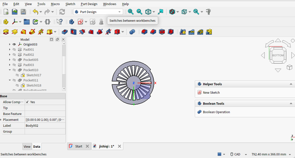 FreeCAD 以 Body 作为单个物件的基本单位,一个 Body 对应一个完整零件。